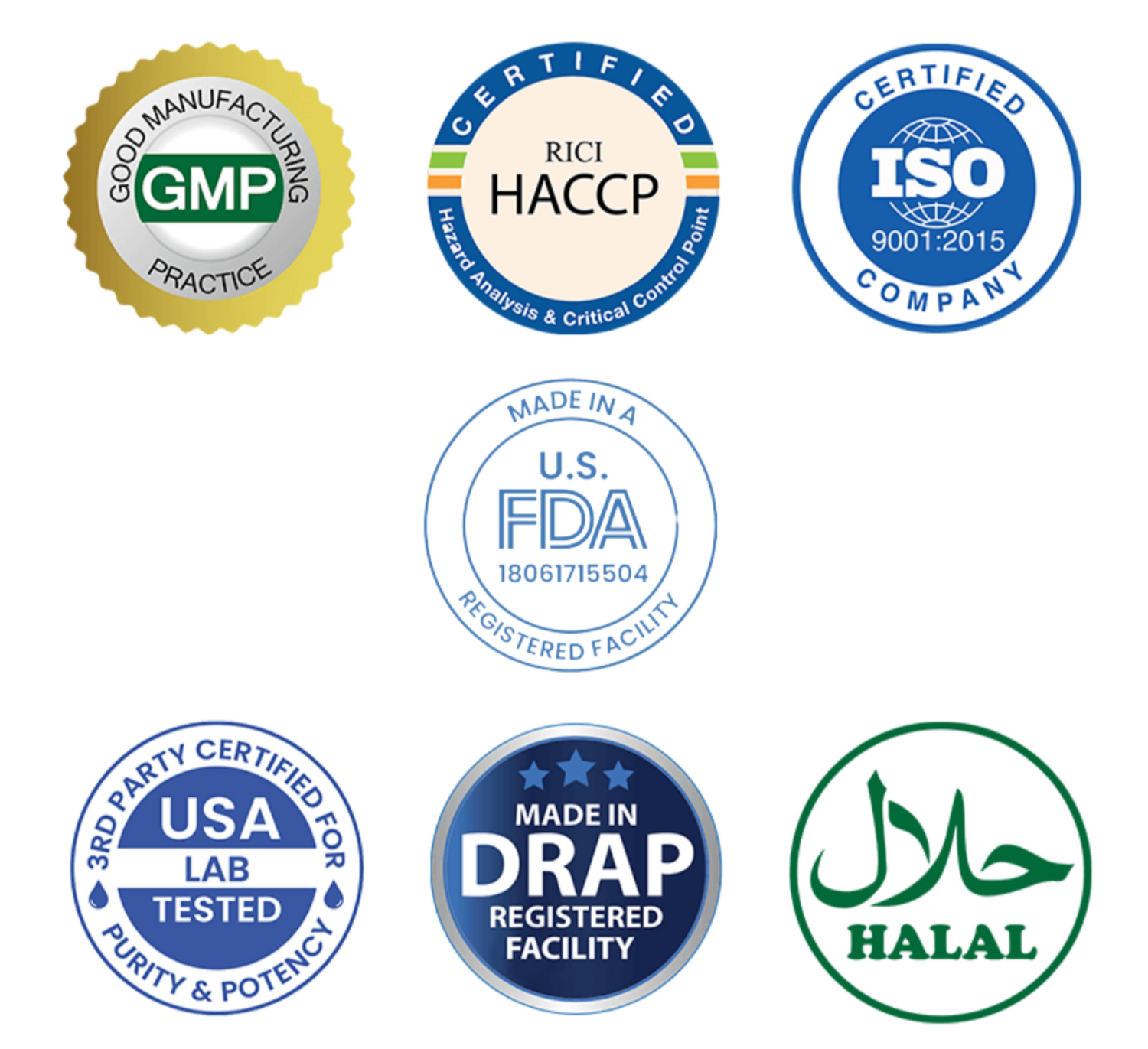 All our supplements are manufactured in facilities that meet international standards — GMP, FDA, DRAP, Halal, ISO, and more — for your safety and peace of mind.